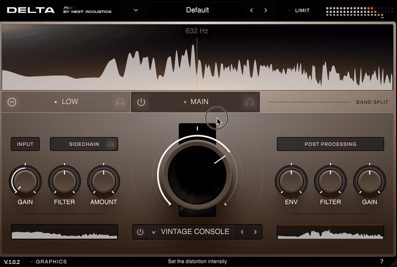 1. Intensity: Controls the distortion intensity — each of the distortion types scale differently with their own unique nature of intensity growth. Experiment with combinations of sidechain gain vs distortion intensity!